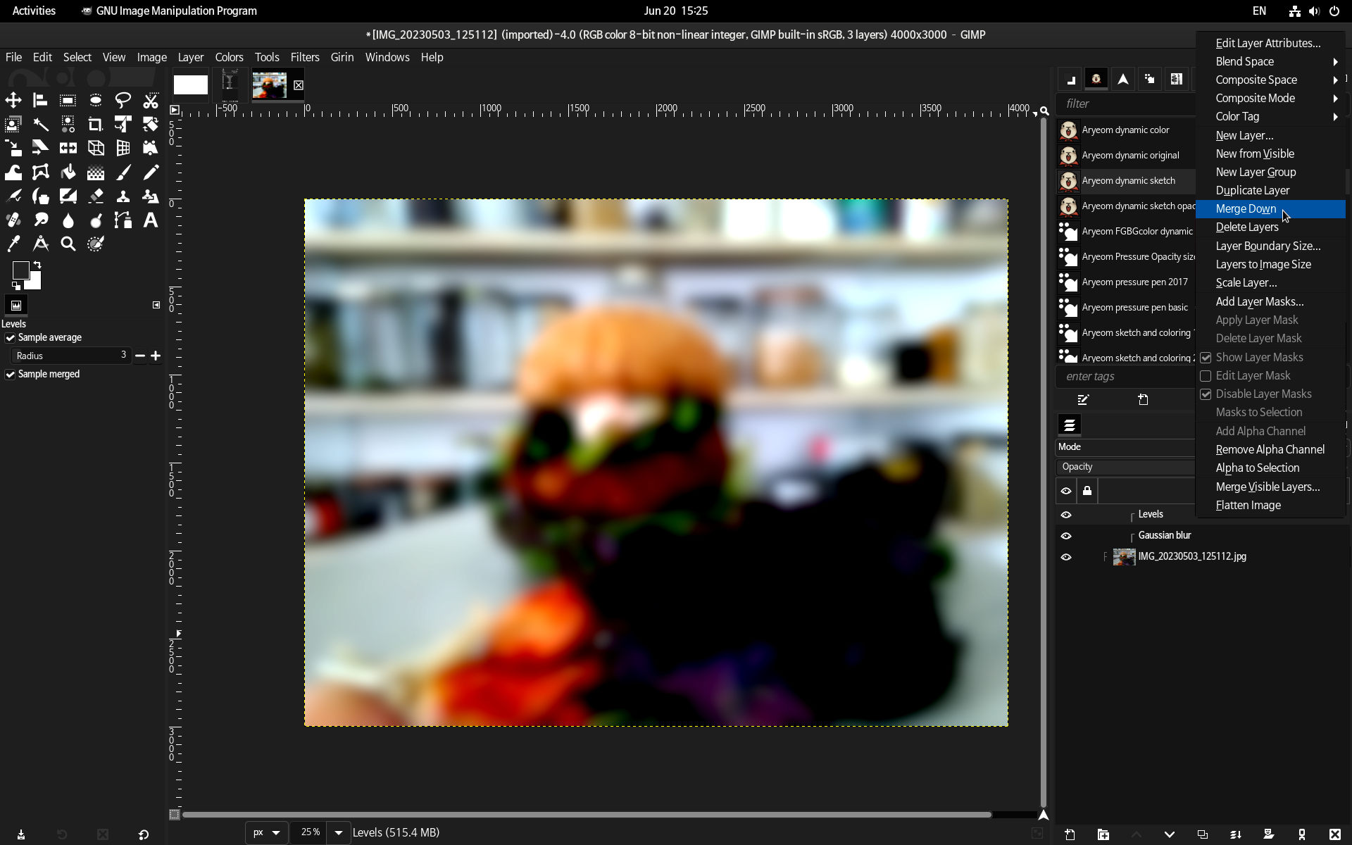 2A)On the Gaussian blur, do ‘Merge Down’:
